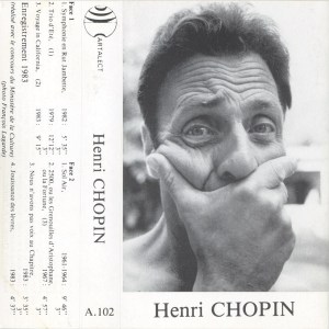 At the end of the Sixties, Chopin began to define with high precision his explorations of “sound poetry made for and of tape recordings,” through  compositions of “vocal micro-particles rather than the Word as we know it,” meaning that he turns his interest to the voice as an element of sonic rather than semantic transmission.³ In the 1967 essay entitled “Why I am the author of sound poetry and free poetry,” Chopin expresses his position towards the written word and signification in a more radical manner, arguing that the latter “means something different for each of us” and “imposes multiple points of view which never adhere to the life of a single person and which one accepts by default,” even going so far as to state that “the omnipotent Word […] has allowed life to lie.”